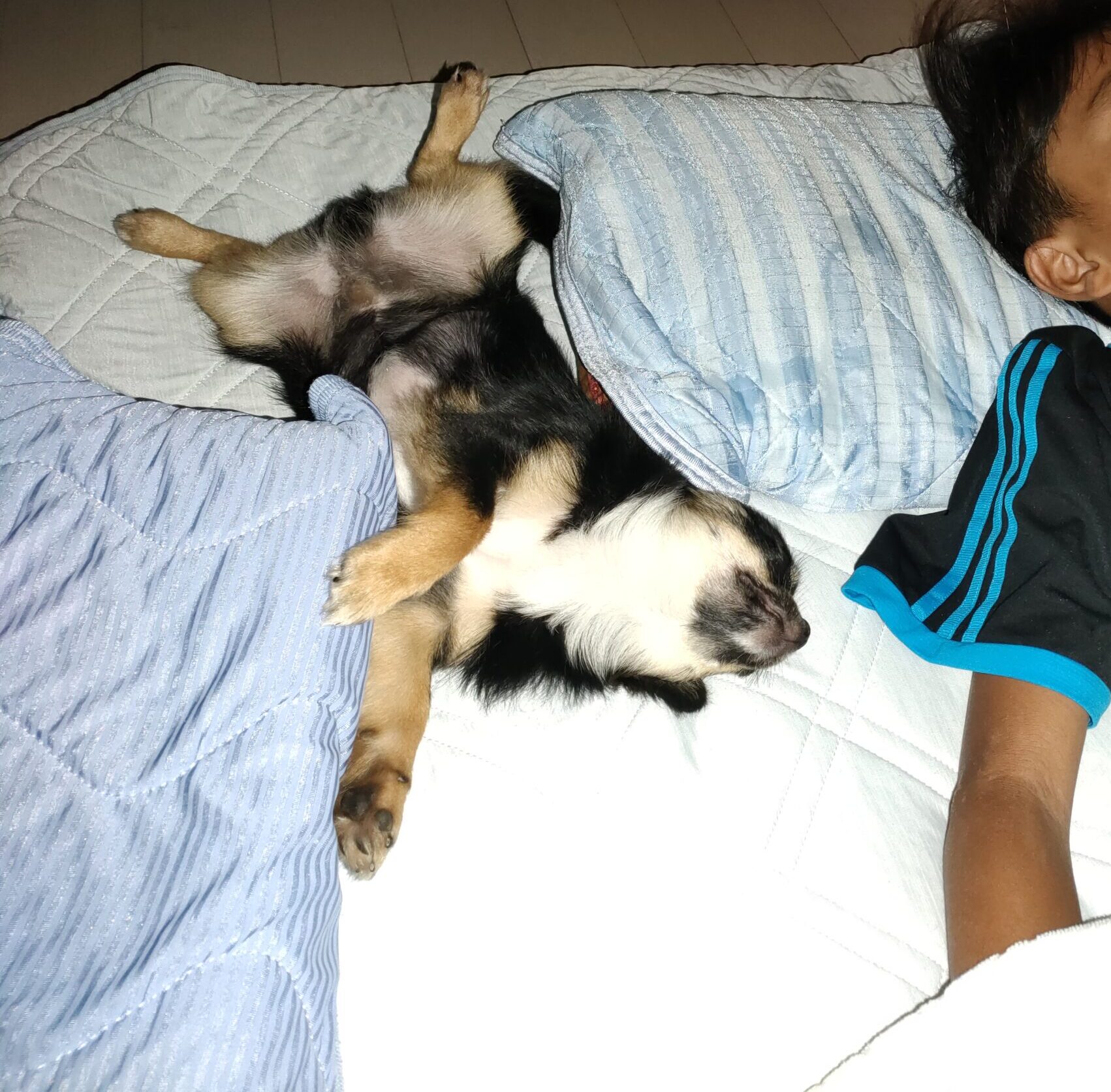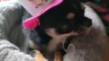 そんな長男と一緒に寝るチャケ。チャケがいるからみんな頑張れる。散歩大好きチャケ。チワワっぽくないチャケです。